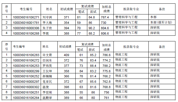 清华大学工业工程系2016年研究生成绩及拟录取名单