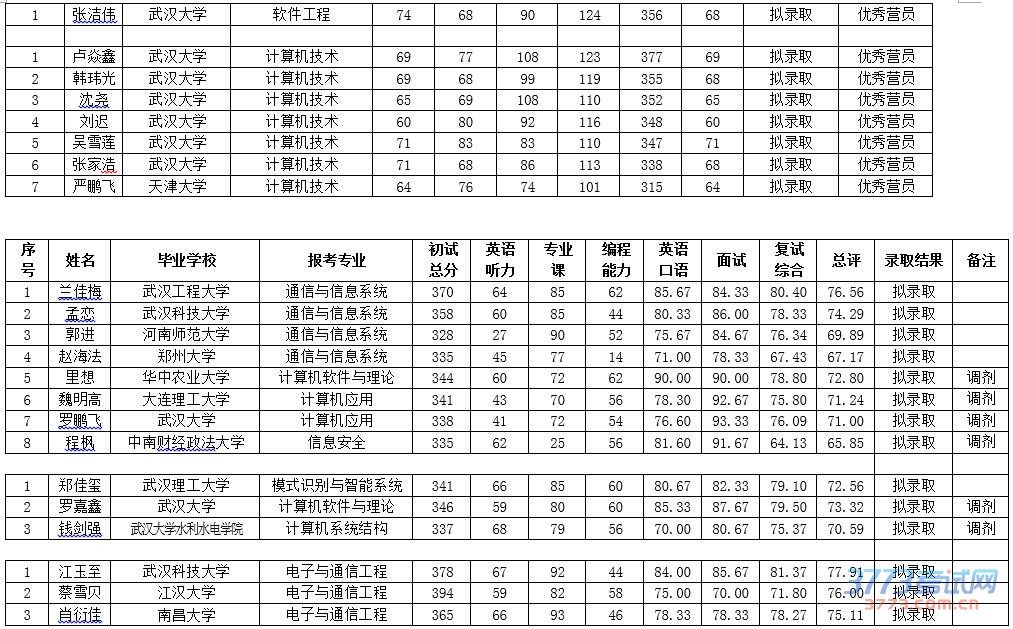 3.通信与信息系统专业的2个名额,根据招生工作领导小组会议决定,拟从报考计算机科学与技术一级学科下各专业、复试未通过的学生中根据总评成绩及个人意愿依次递补录取。录取结果将另行公示。