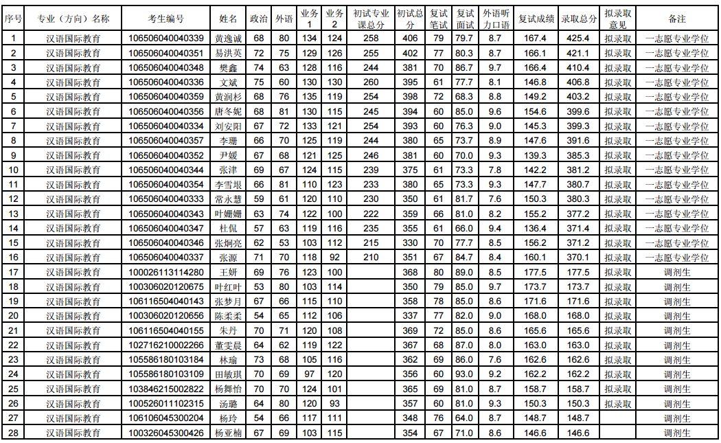 2016年湖南大学材料科学与工程学院拟录取名单(第二轮)