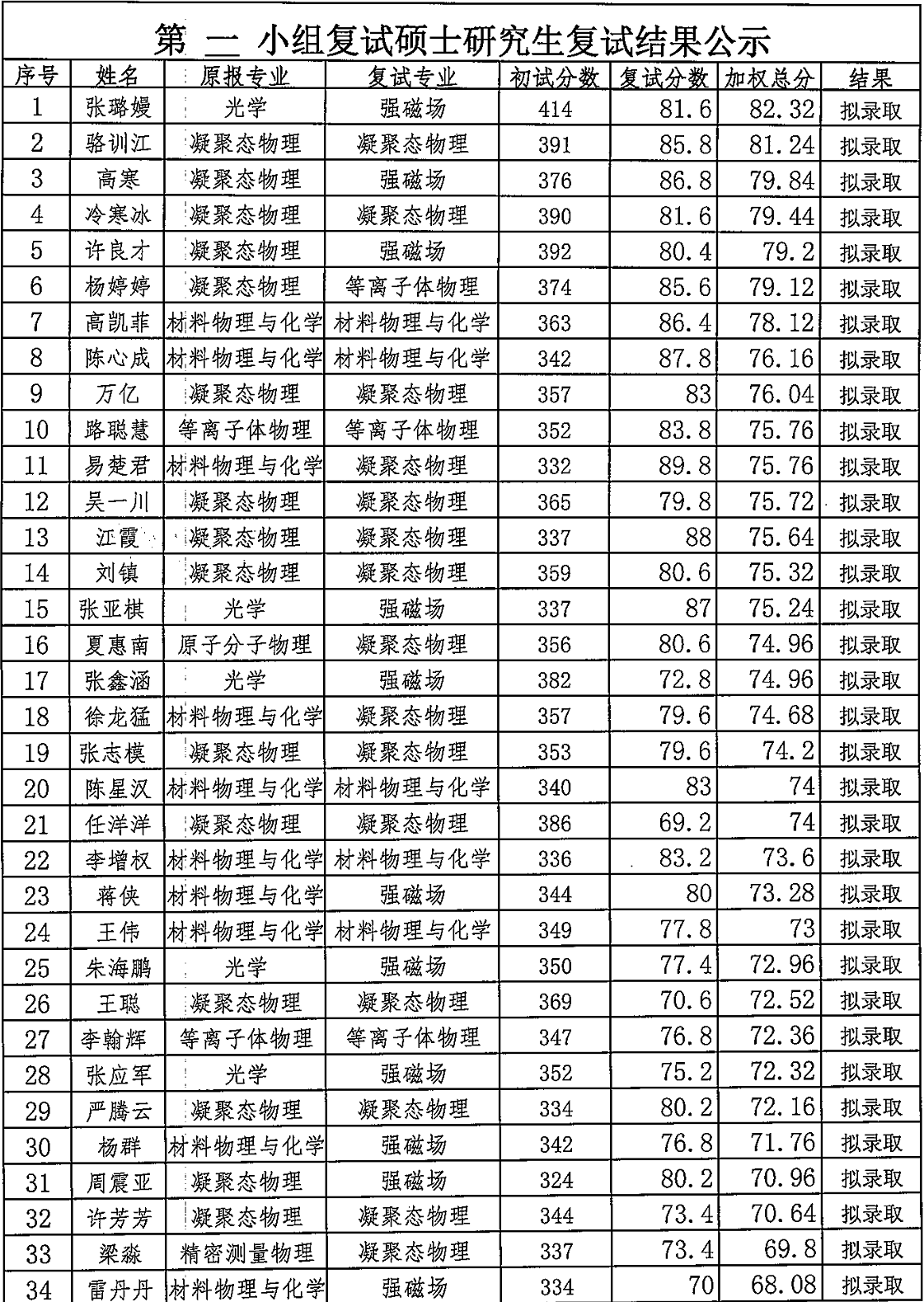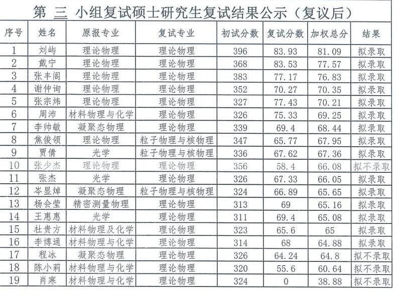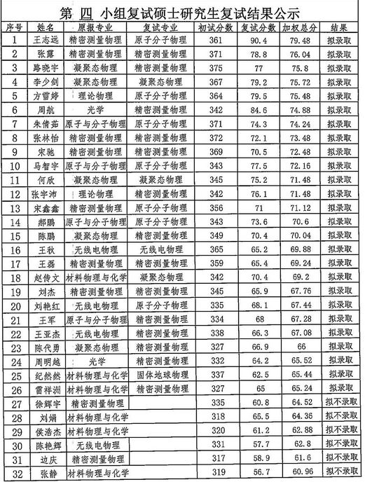 2016年华中科技大学物理学院硕士拟录取名单