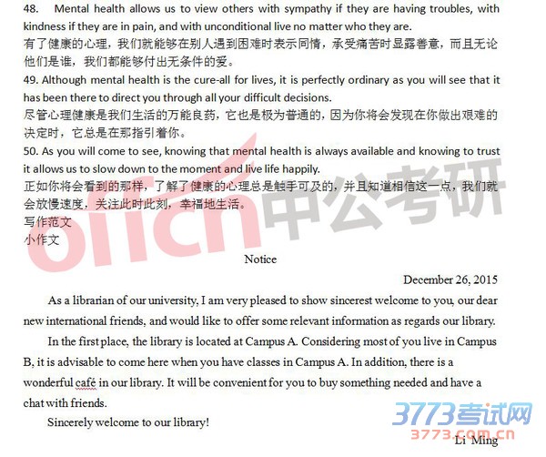 This notice is to introduce briefly the library on our campus to those international students who are newly enrolled. The following points is supposed to arouse the attention of new overseas students. At the top of the list, the library opens at 7:00 o’clock in the morning and closes at 22:30 everyday, so it is wise for anyone who wants to read books in the library and borrow books to remember the above mentioned time. More importantly, each foreign student need apply for an entrance card to the library in the International Students Office in our university. Last but not least, I, on behalf of our library, extend warm greetings to all newly students from abroad.