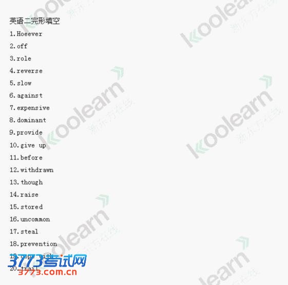 2015考研英语二答案完整版