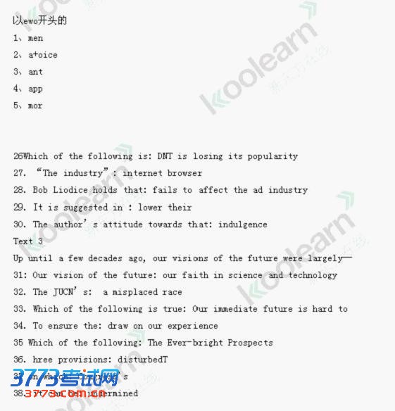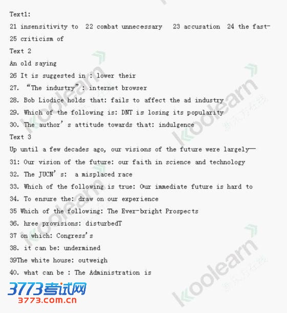 2015考研英语一试题答案完整版发布