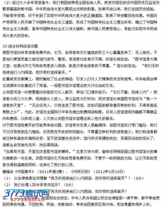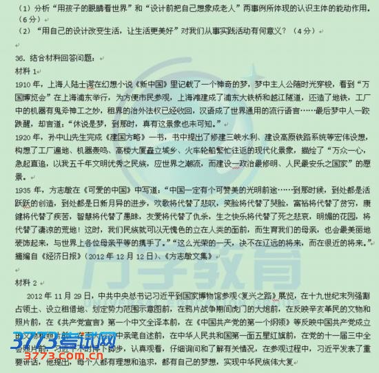 2015考试政治真题试题图片版发布