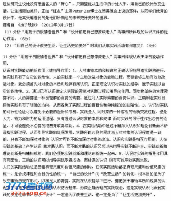 2016考研政治答案大题四个全面答案