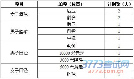 获得一级运动员、运动健将、国际健将称号之一的女子篮球、男子篮球、田径(男子:铁饼、10000米竞走、3000米障碍;女子:5000米竞走、链球。)项目高水平运动员,经生源所在省教育招生考试院审核合格,可申请参加我校体育专项单独考核和文化课单独考试。