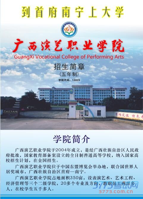 广西演艺职业学院2016年五年制招生简章