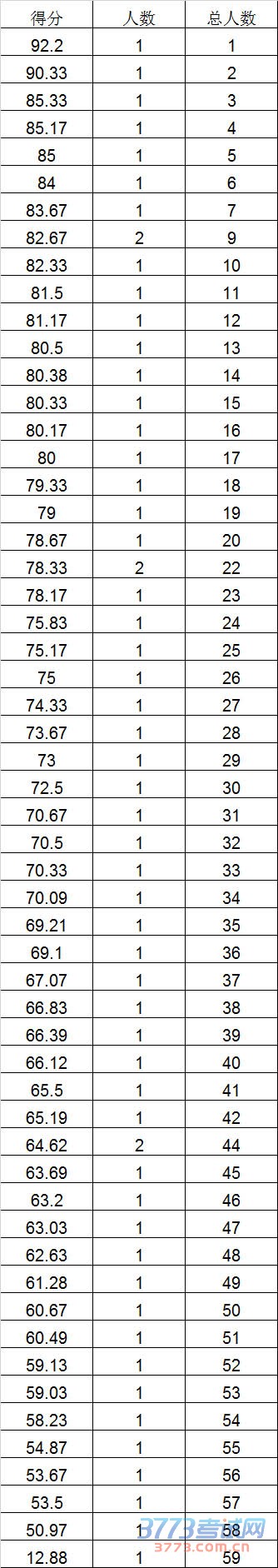 2016年河北体育学院少数民族传统体育项目测试成绩一分一档表