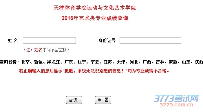 天津体育学院运动与文化艺术学院2016年艺术类专业成绩查询 天津体育学院运动与文化艺术学院2016年艺术类专业成绩查询网址:http://chaxun.tjtwy.cn/