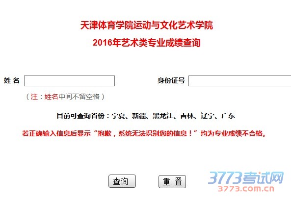 2016天津体育学院运动与文化艺术学院艺术类专业成绩查询网址:http://chaxun.tjtwy.cn/