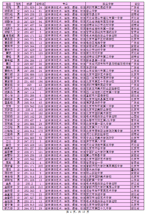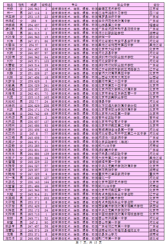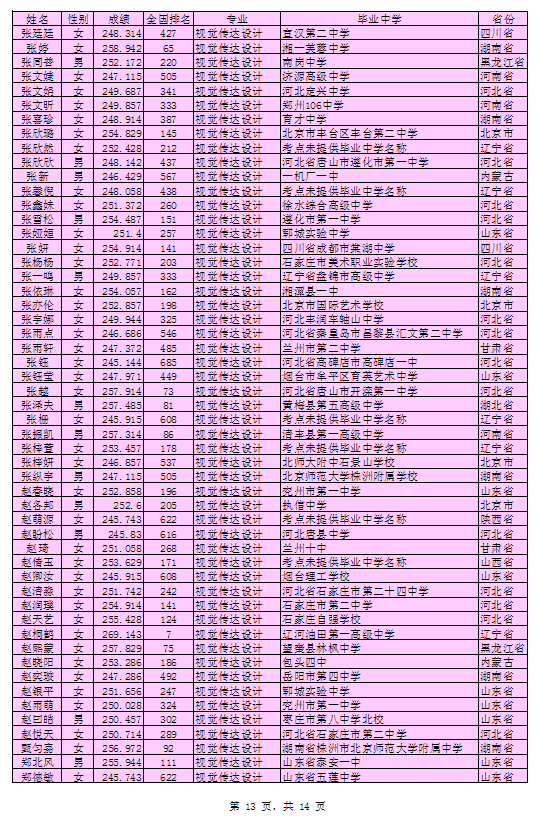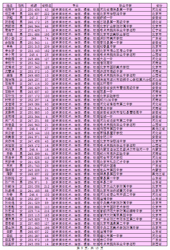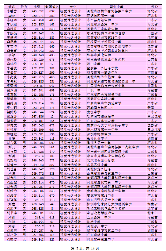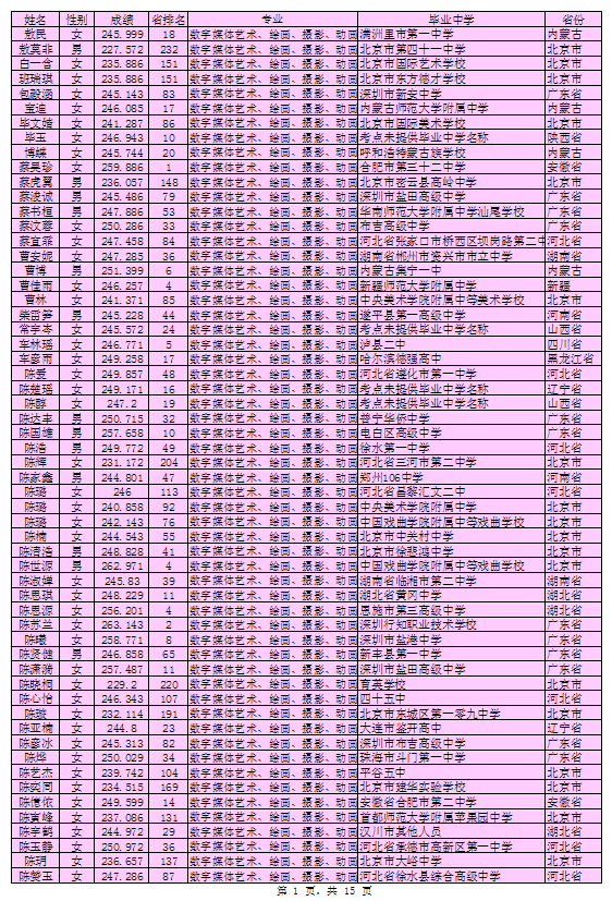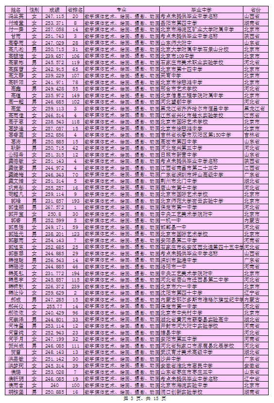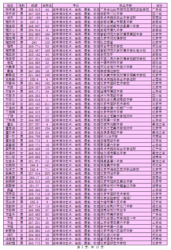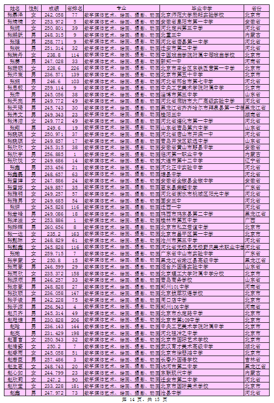 北京印刷学院2016年艺术类本科专业考试合格考生名单
