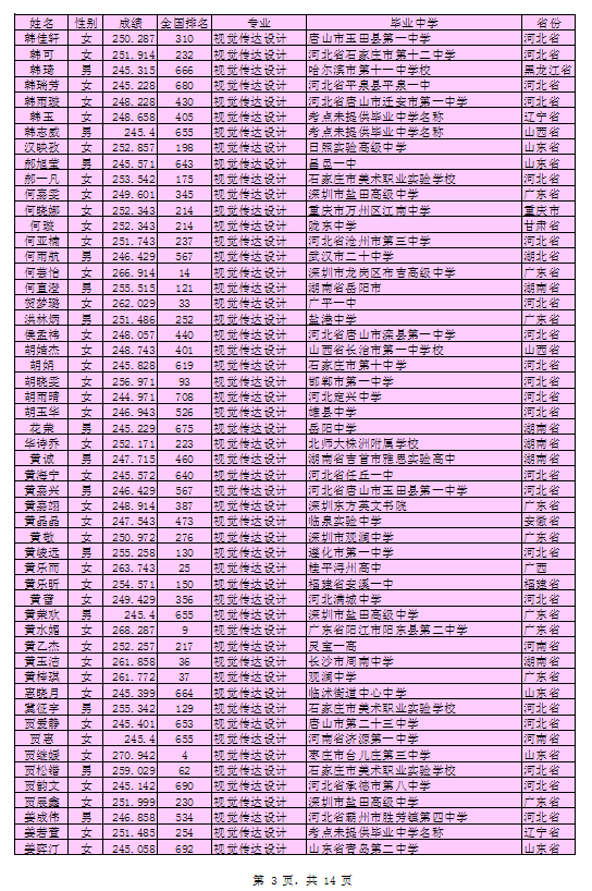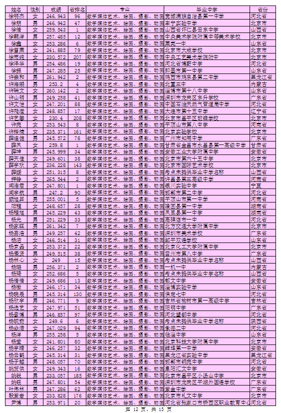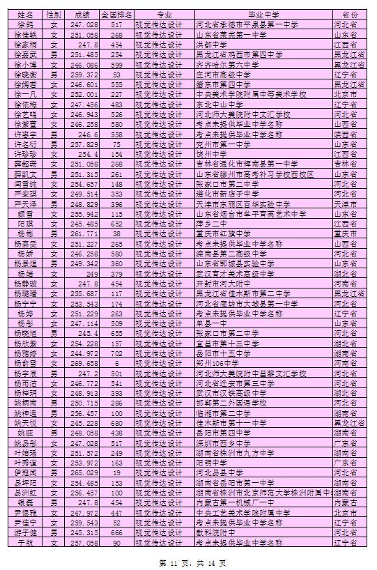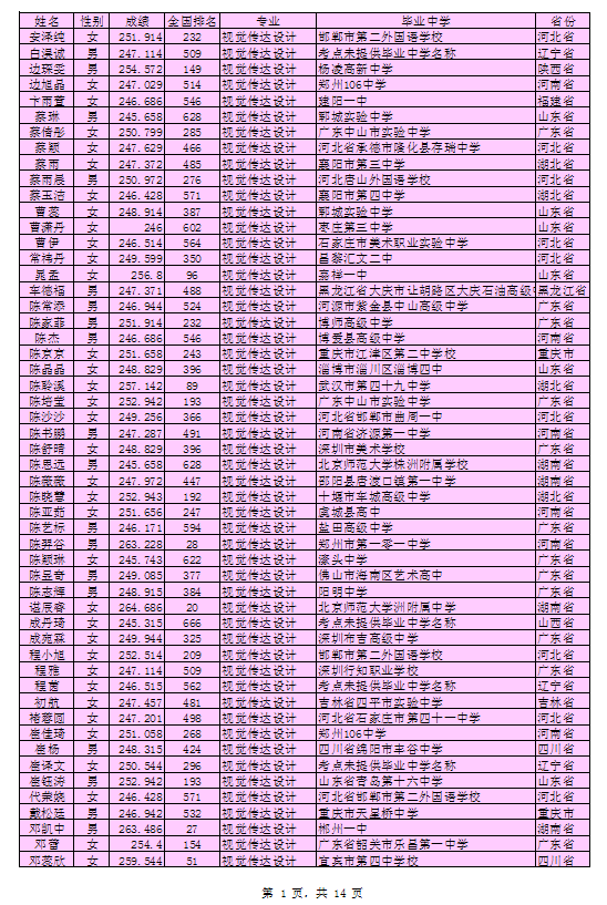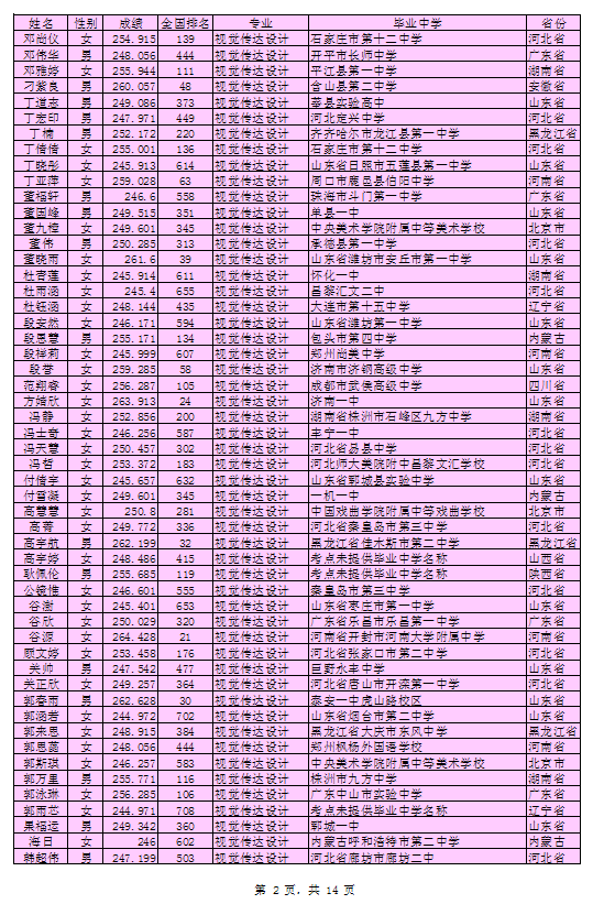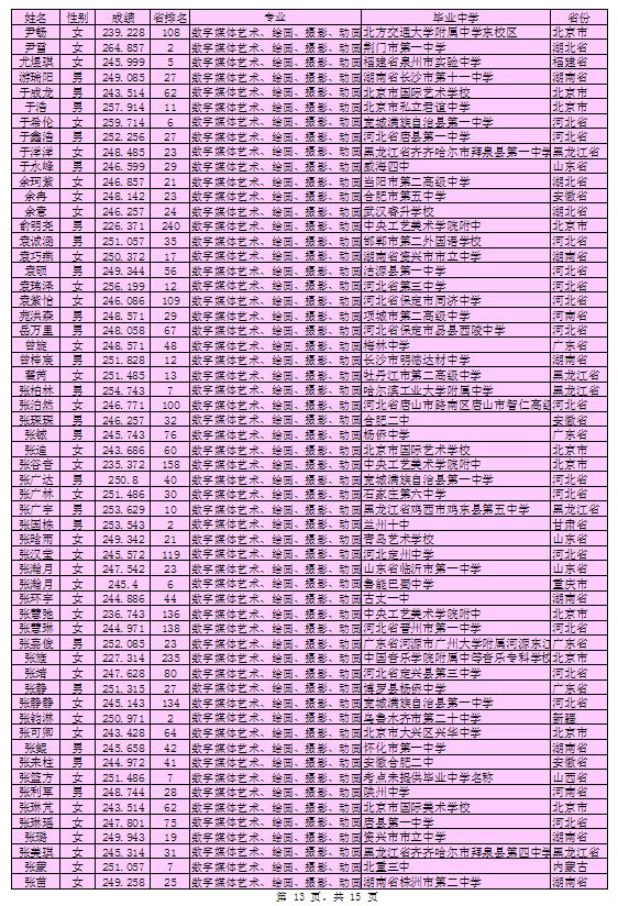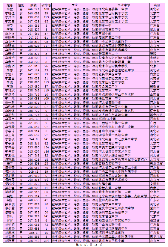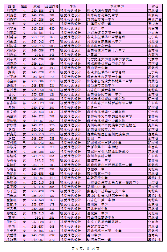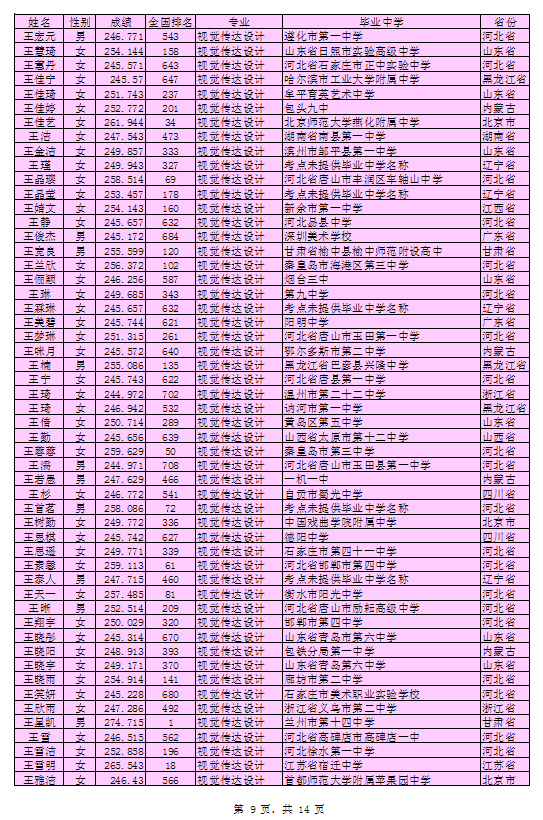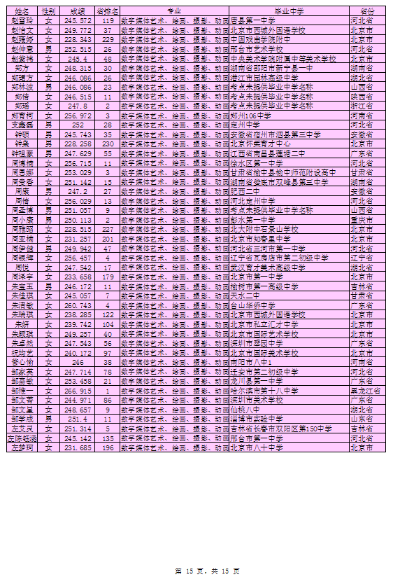 北京印刷学院2016年艺术类本科专业考试合格考生名单