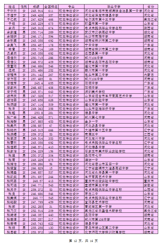 经北京印刷学院招生工作领导小组讨论通过,现将2016年艺术类本科专业考试合格考生名单公示如下(以姓氏拼音为序)。