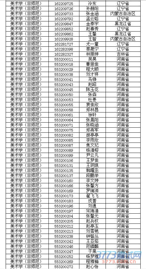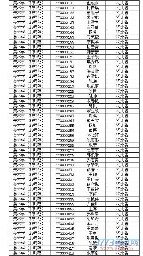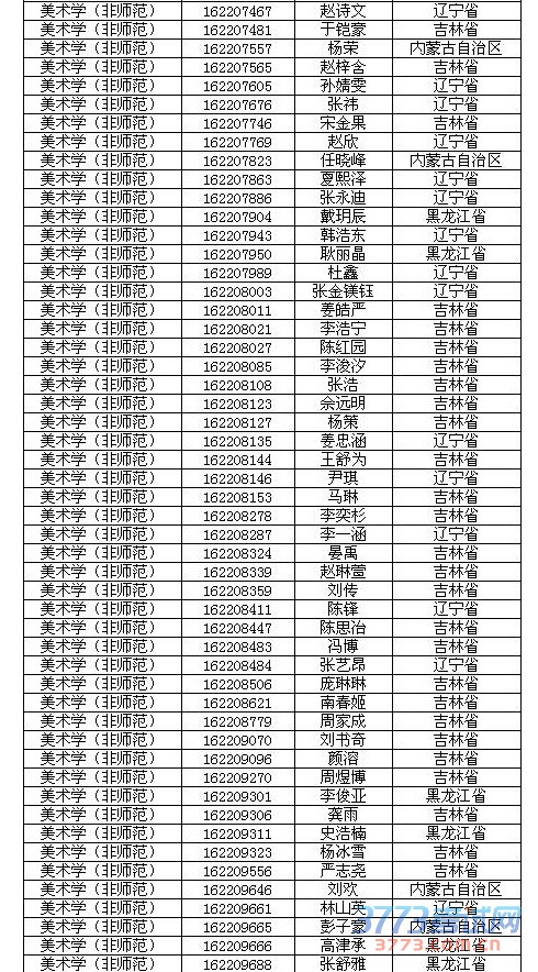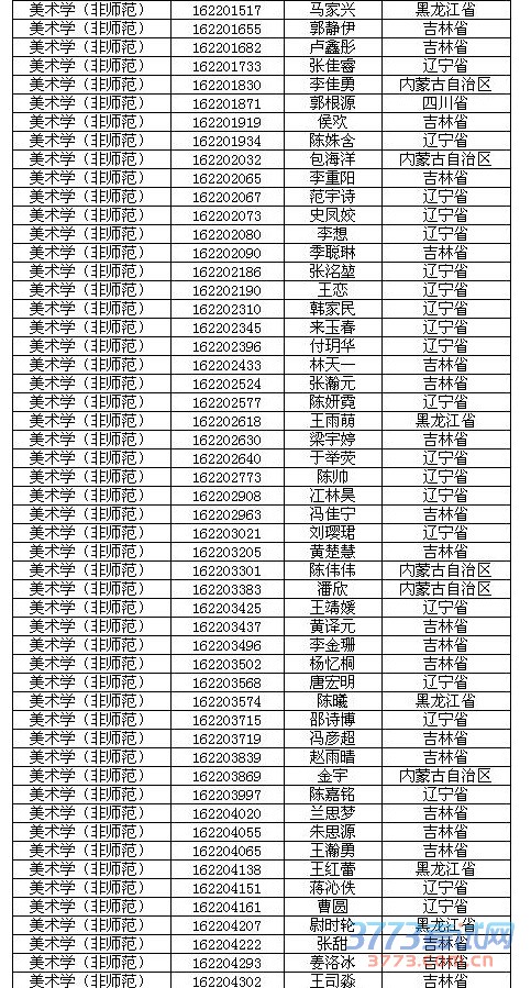 东北师范大学2016年美术学(非师范)专业校考合格名单