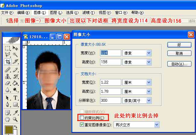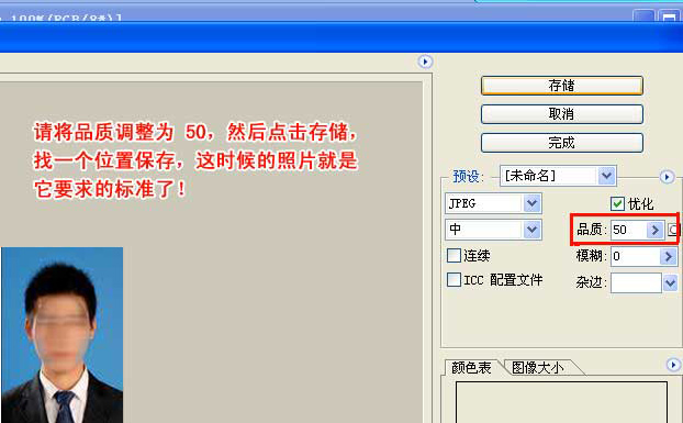 照片扩展名只能为JPG,系统不接受其他格式的文件。请用photoshop或其他软件处理照片,photoshop的处理方法见下图: