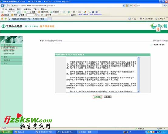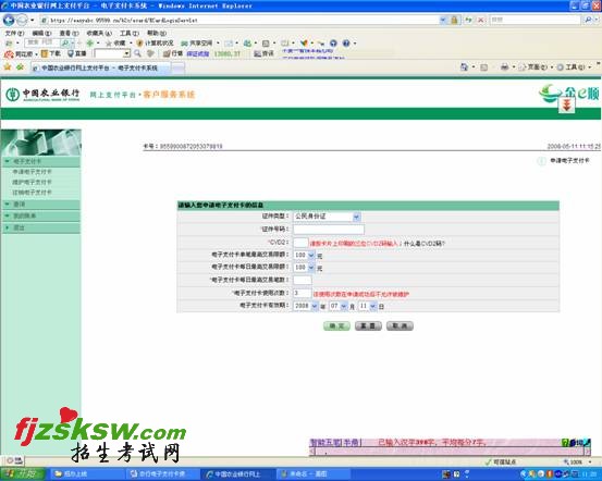 欢迎您使用中国农业银行电子支付卡办理网上支付业务!