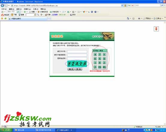 2.金穗卡查询密码:输入对应的金穗卡的密码,请注意此密码是通过用鼠标点击登录区右边的"软键盘"(图三)中的红色线条标示区域)来输入的,如果输入有误请点击该区域内的"清除"或"退格"按钮来清除错误输入。