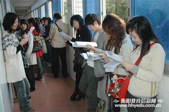 本网讯 10月8日,衡阳市2008年高中(中职)教师资格认定非师范类测试工作在市六中学校举行,全市共270余名非师范类毕业人员参加本次面试及试讲测试。
