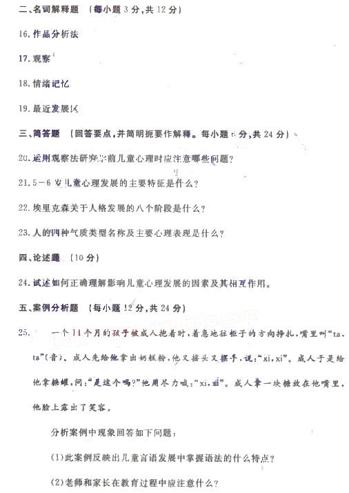 2009年4月浙江省教师资格考试心理学(幼儿园