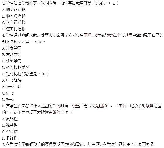 2.学生在听教师讲解公式原理时,总是在已有知识经验基础上去把握所学的内容,这属于( D )