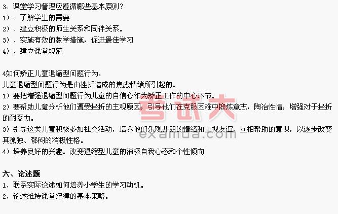 3课堂学习管理:是指教师在课堂教学活动中,建立一个有效的学习环境,促进学生积极参与教学活动,从而实现预定教学目标的过程。‘