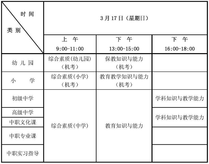 一、2013年上半年中小学和幼儿园教师资格考试笔试时间安排表