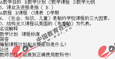 A教学大纲 B课程计划 C教科书 D教学指导书