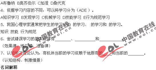 3、强调学生在学习中的主动性和认知结构的重要性,认为教学的最终目的是促进学生对学科基本结构的掌握,持这种观点的心理学家是(A )。