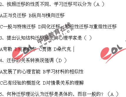 6、影响迁移的主要因素有________、___________和_____________。(相似性、原有认知结构、学习的心向与定势)