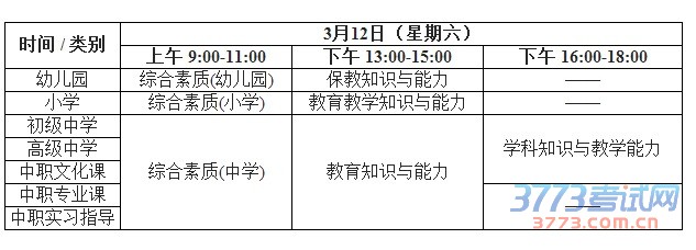 3月12日(星期六)。贵州省2016年上半年中小学教师资格考试笔试所有类别、科目均采用纸笔考试方式进行,每场考试时间为120分钟。