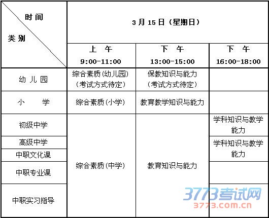 二、2015年上半年中小学教师资格考试笔试时间安排表