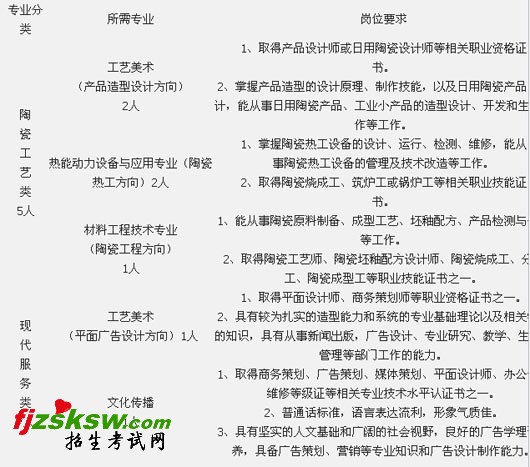 1.陶瓷类(5人):工艺美术(产品造型设计方向)2人,热能动力设备与应用专业2人,材料工程技术专业1人。