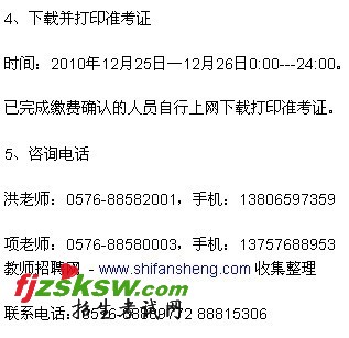 时间:2010年12月22日—23日9:00——16:00。报考费:80元。