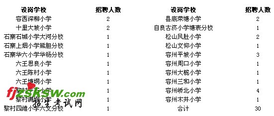 附件一:2011年面向在岗代课人员招聘乡镇小学教师岗位设置一览表(共30人)