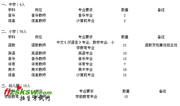 ㈠中小学:全日制本科及以上学历、学士及以上学位,其中本科学历的年龄在28周岁及以下(1983年7月1日以后出生),研究生学历的年龄在30周岁及以下(1981年7月1日以后出生),已取得教师资格证书。