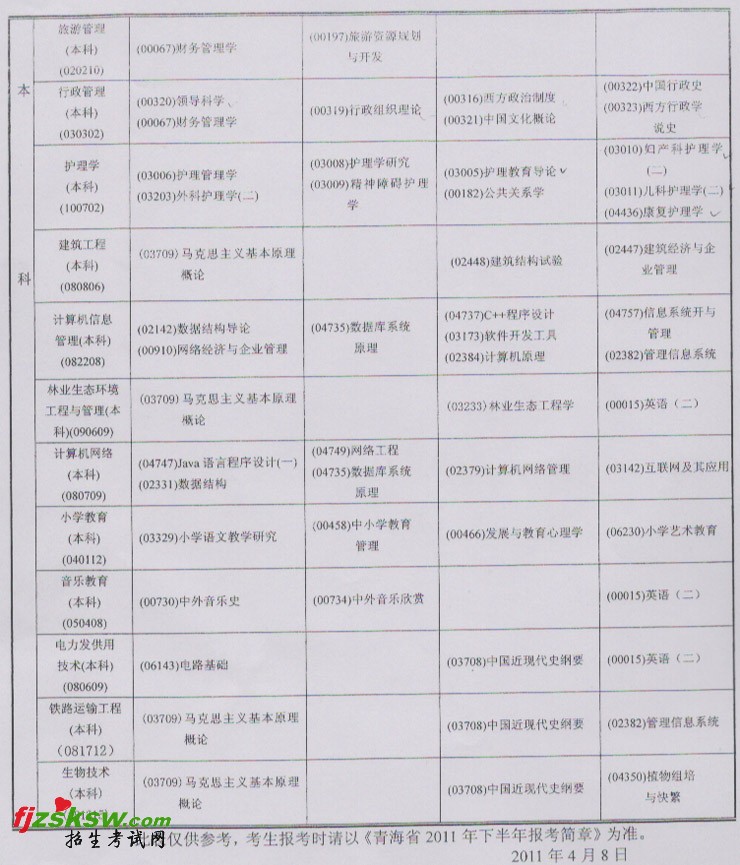 青海省2011年下半年教师资格证考试时间安排表