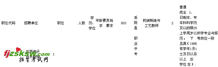 注:专科学历的考生限岳阳县籍,本科及以上学历的户籍不限。