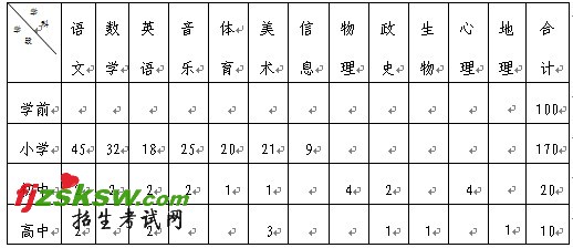 (一)招聘指标:共计300名。其中学前教育100名,小学170名,初中20名,高中10名。