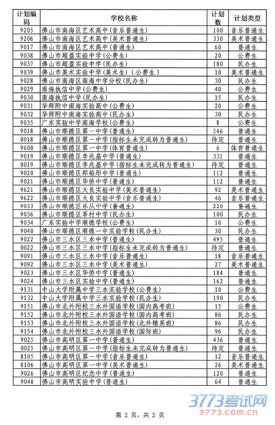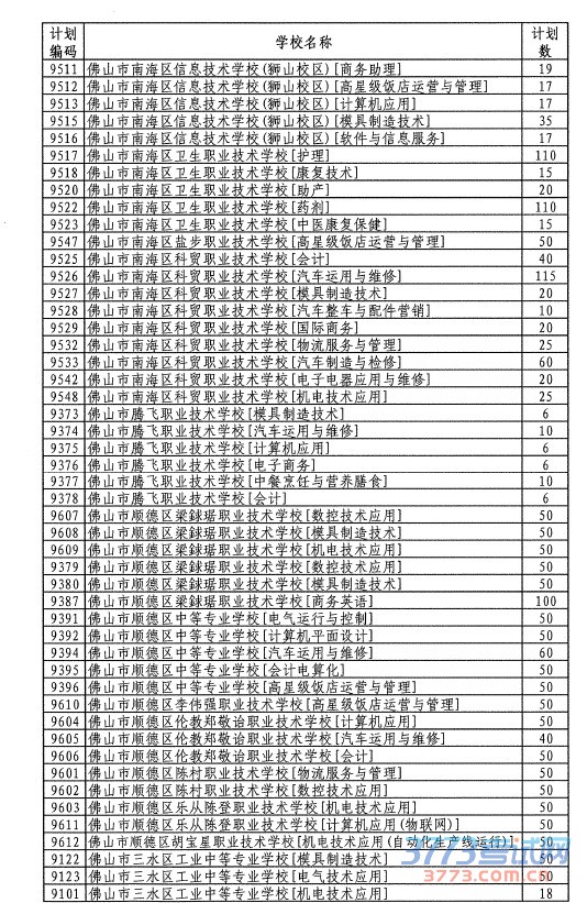 佛山市招生办公室关于公布佛山市2016年高中阶段学校面向全市招生计划代码的通知