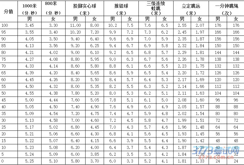 二、2016年广州市初中毕业生学业考试体育考试项目评分标准