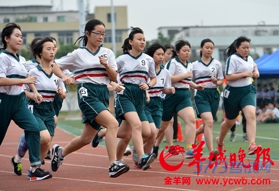 广州市第一中学考点,考生们在进行长跑测试。 羊城晚报记者汤铭明摄