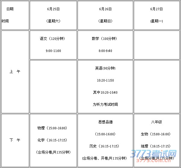 为做好2016年海南省初中毕业生学业水平考试和高中阶段学校招生工作,推进考试招生制度改革,均衡发展义务教育,促进普通高中教育与中等职业教育协调健康发展,维护教育公平和社会和谐,确保基础教育课程改革顺利实施,推动学校深入实施素质教育,提高教育教学质量。3月25日,海南省制定印发了《2016年海南省初中毕业生学业水平考试和高中阶段学校招生工作实施细则》。记者获悉,全省统一考试时间确定为6月25日至27日。