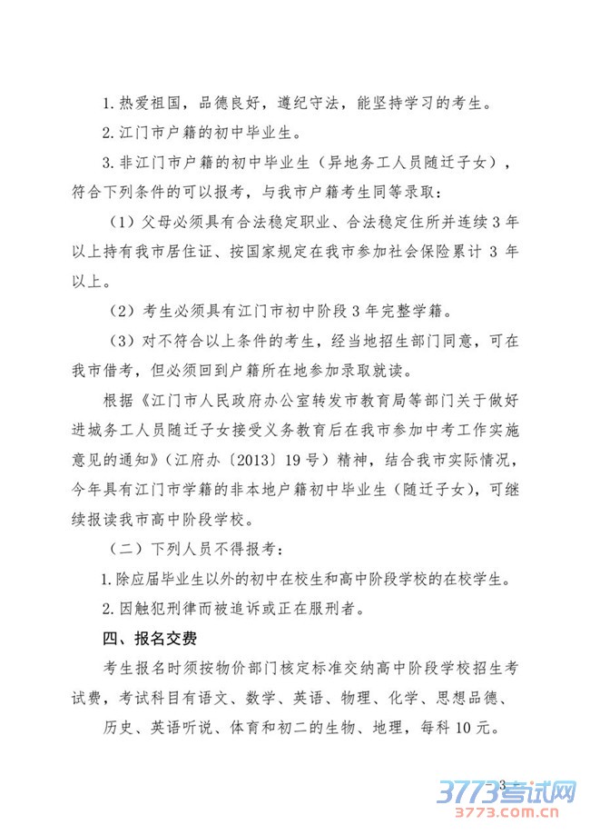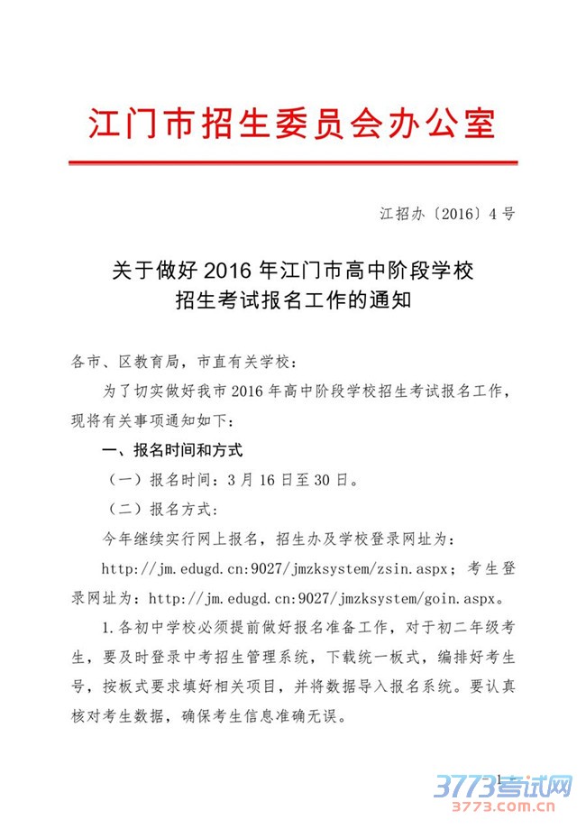 关于做好2016年江门市高中阶段学校招生考试报名工作的通知