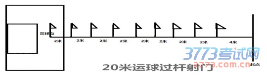 ②竖劈叉(8分):两脚伸直,前后劈开成直线,前腿后侧与后腿前侧贴地。左、右腿在前各测一次,臀部紧贴地面得满分4分。胯距地面每增加1厘米扣0.2分。