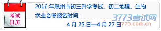 泉州市2016年初中毕业班学生的毕业、升学考试和初二年地理、生物学业考试今日开始网上报名,报名截至本月27日结束。