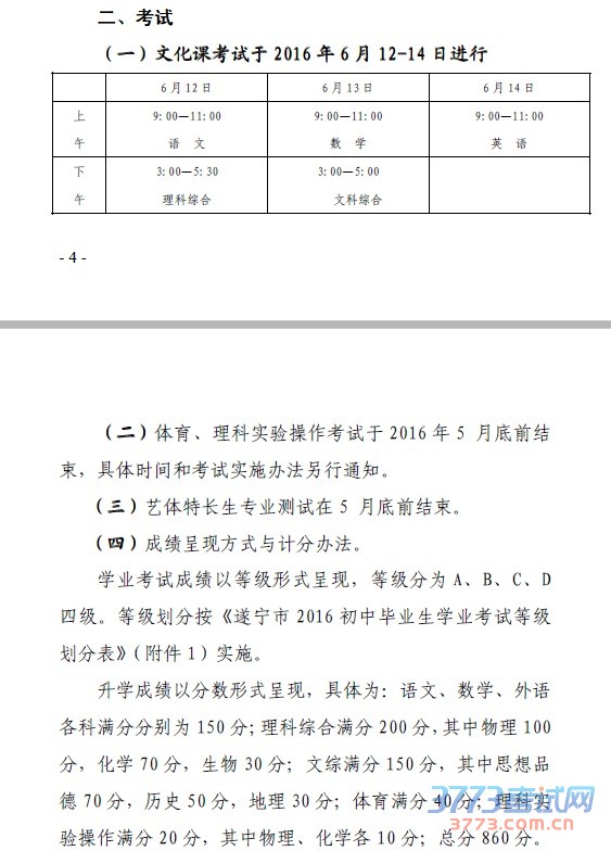 遂宁市教育局2016年遂宁中考方案招生实施办法 2016遂宁中考考试时间安排