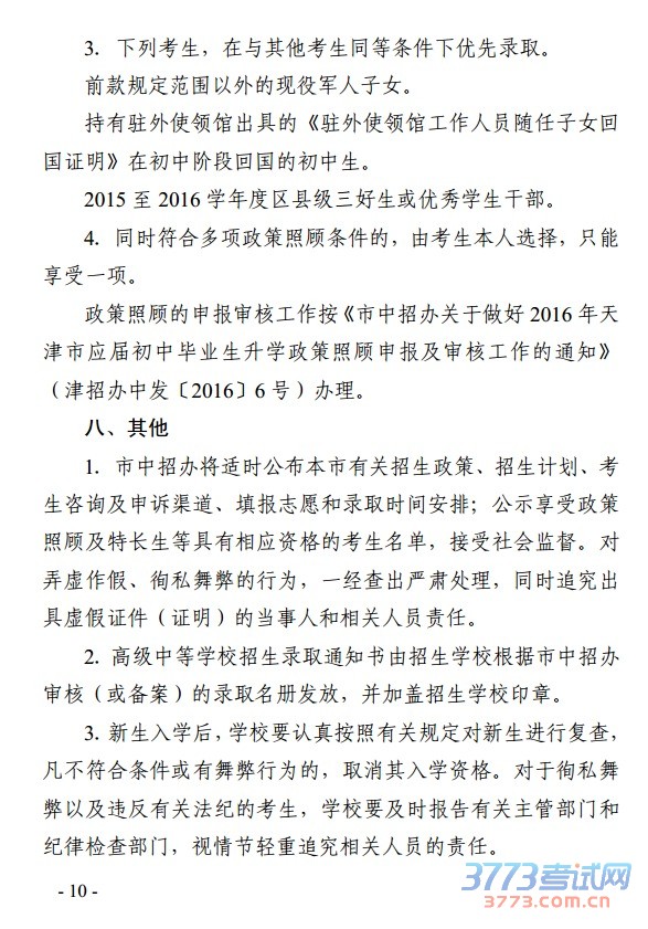 政策照顾的申报审核工作按《市中招办关于做好 2016年天