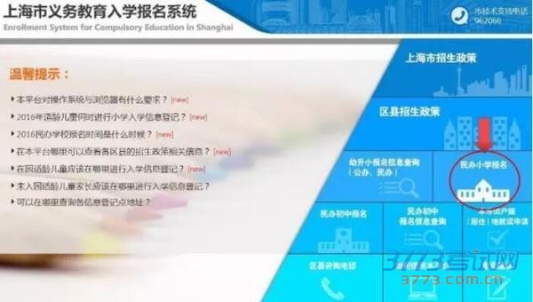 民办小学报名:报名时登录“上海市义务教育入学报名系统”(www.shrxbm.cn),点击“民办小学报名”进行网上报名。