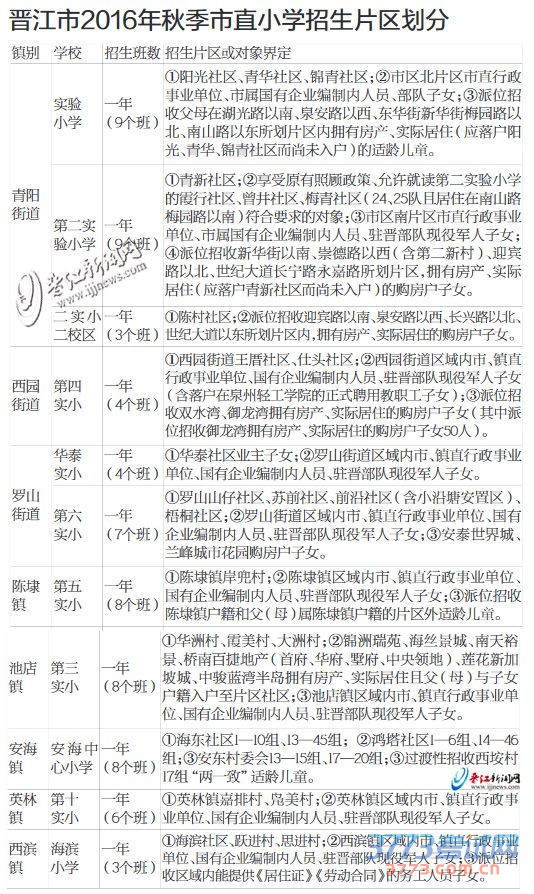 晋江市2016年小学幼儿园招生工作意见解读