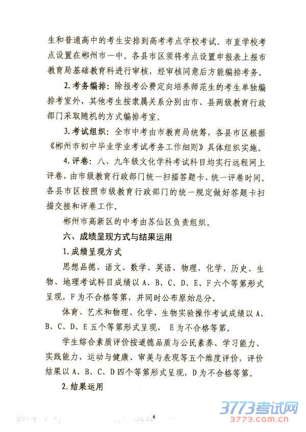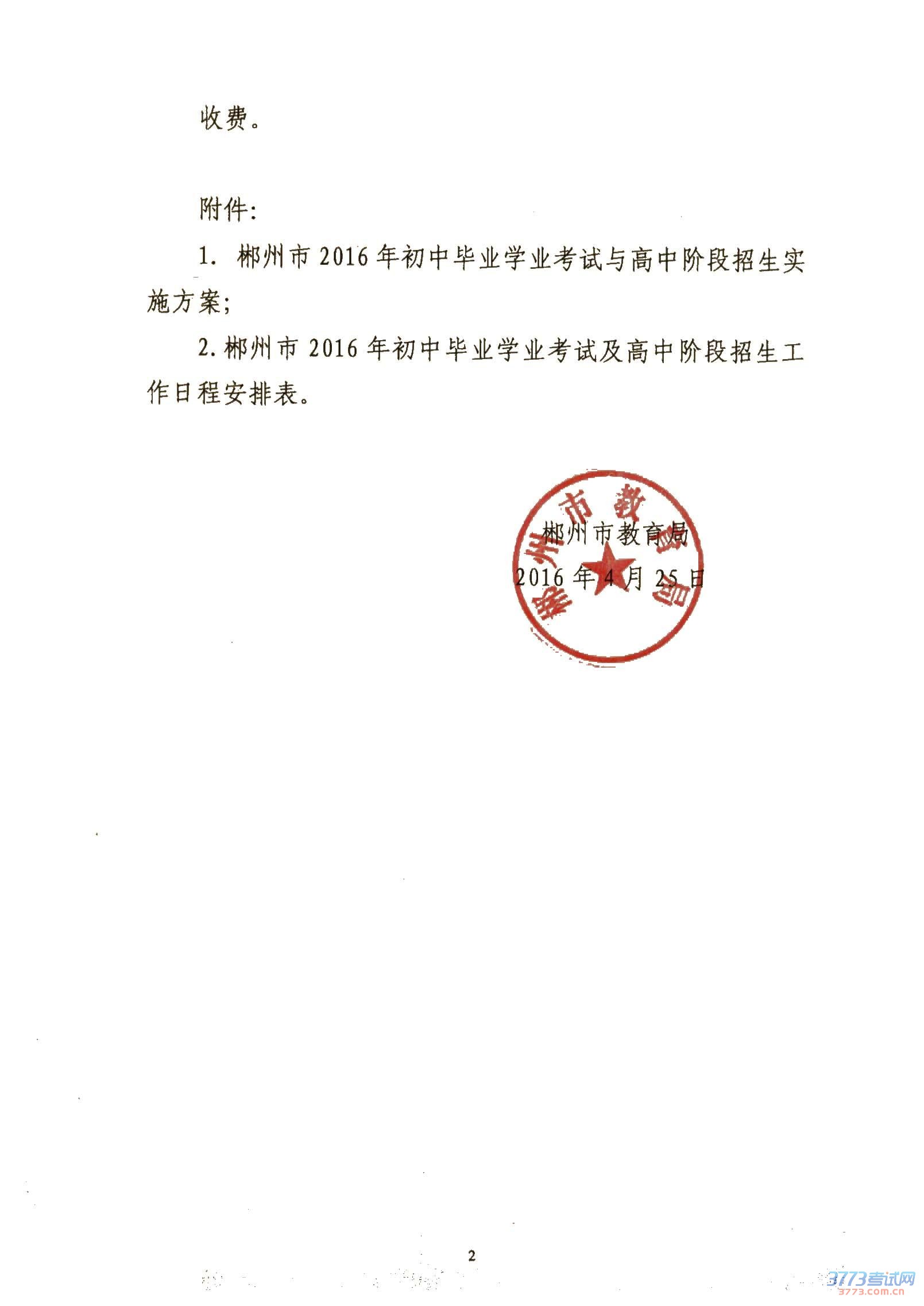 关于印发《郴州市2016年初中毕业学业考试与高中阶段招生实施方案》的通知